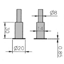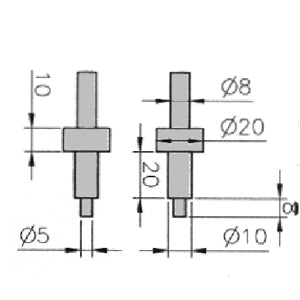 Cylindrical jaw blades for measuring hole and wall center distances. 5, 10 and 20mm diameters can be used as shown by always using an anti-pivot support.